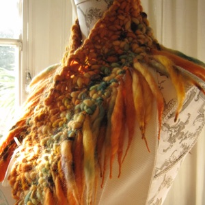 Vintage buttons, silk & wool, chunky textures, felt, delicate lacy patterns, Tassels, Pom Poms, Velvet flower pins.... a tangle of beads & wool....